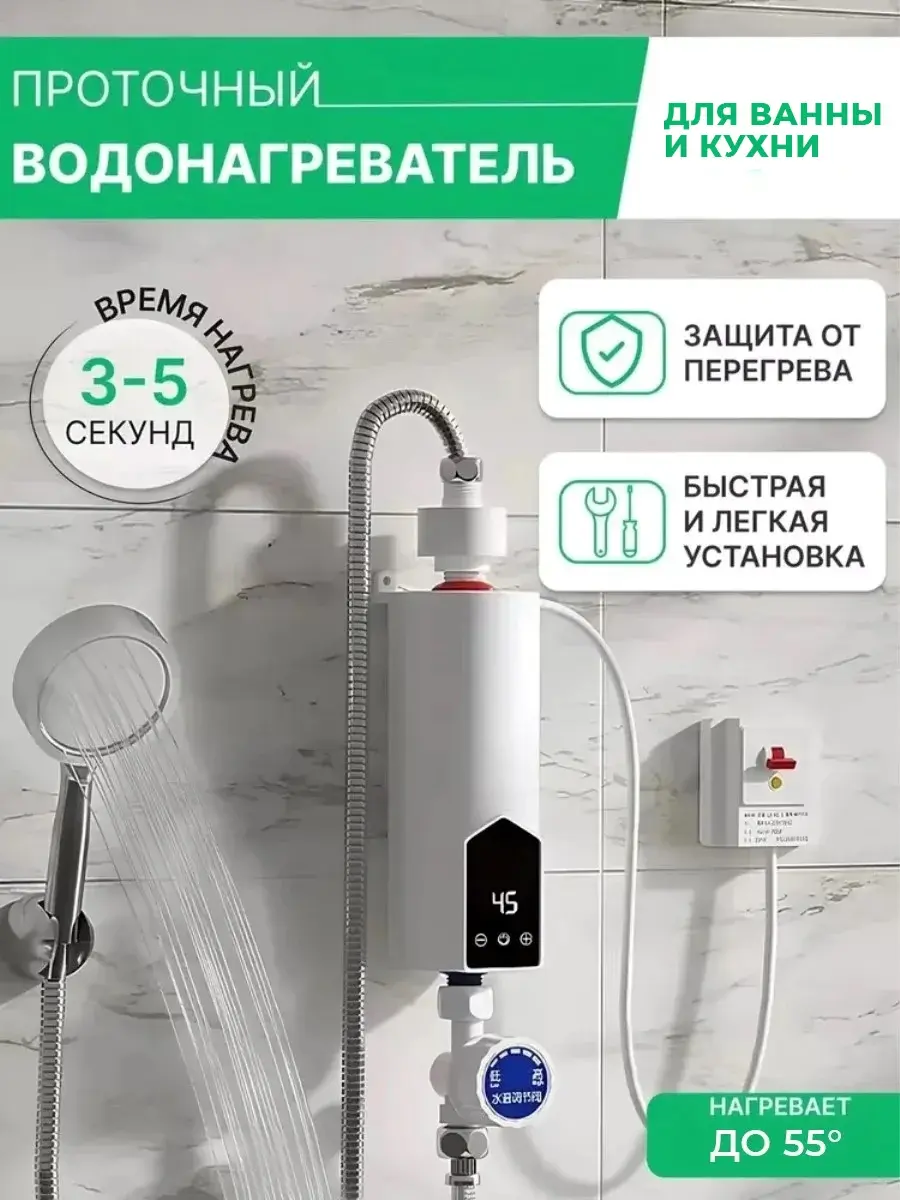 - Мощность до 5.5 кВт — достаточно даже для душа